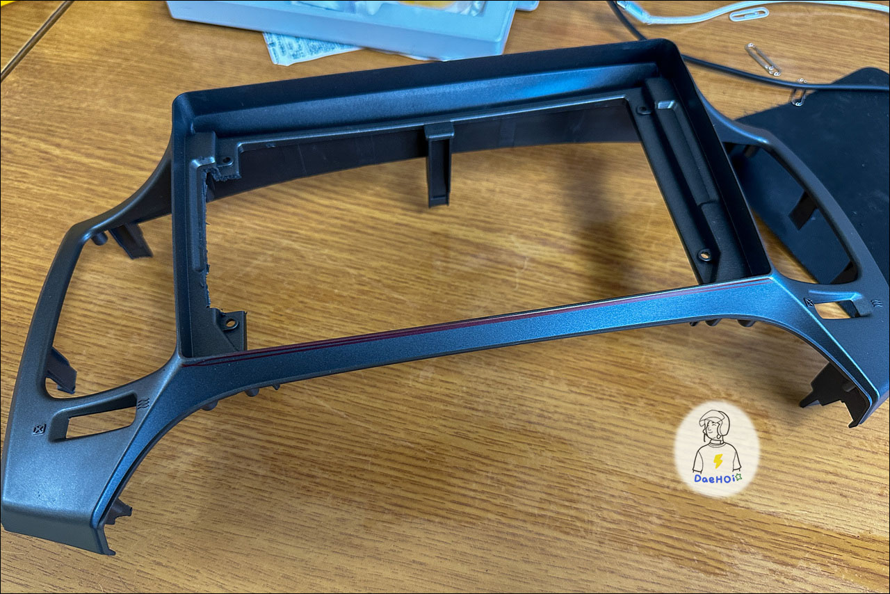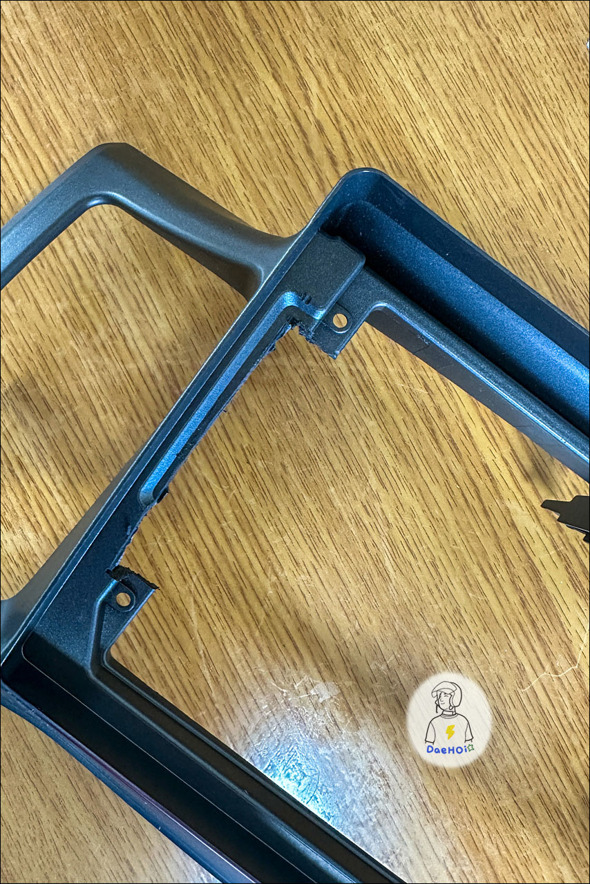 ▲ 카플레이 모니터 뒤쪽에 간섭이 생기는 부분은 마감재가 아닌 카플레이 모니터를 갈아냈습니다..