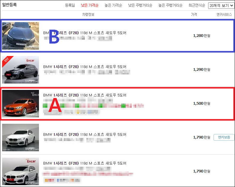 사고내역때문에 A차량보다는 B차량으로 마음이 기우는데..