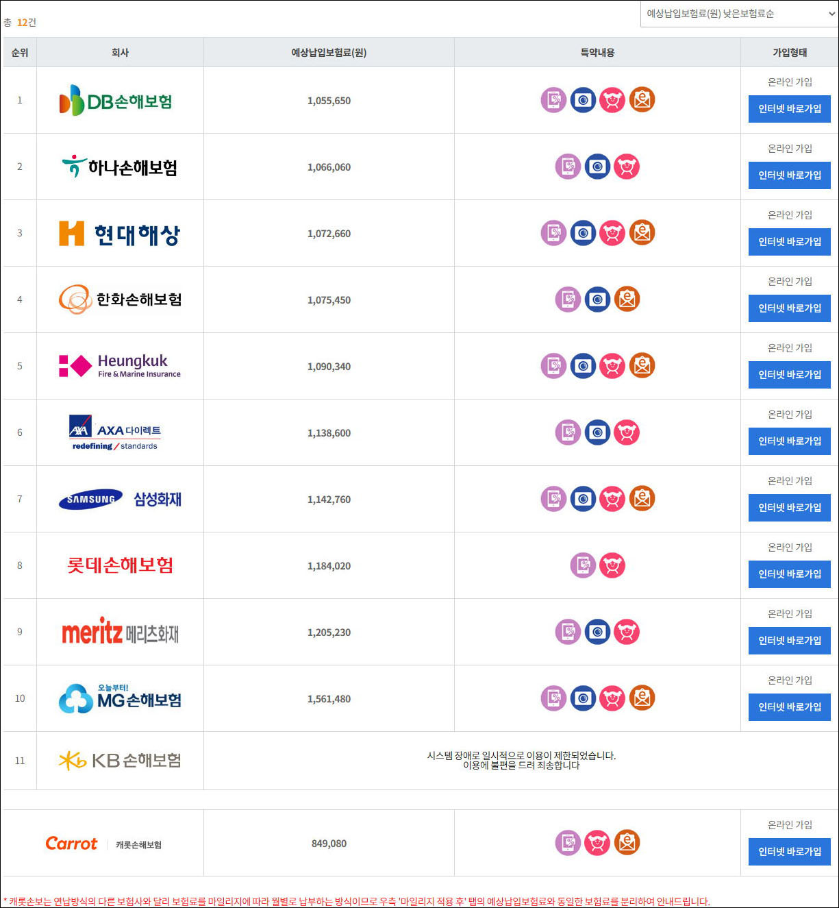 보험료를 조회해보니 제일 저렴한게 105만원이네요. 자동차세가 41만원 정도이니 기본 150만원 지출이군요.
