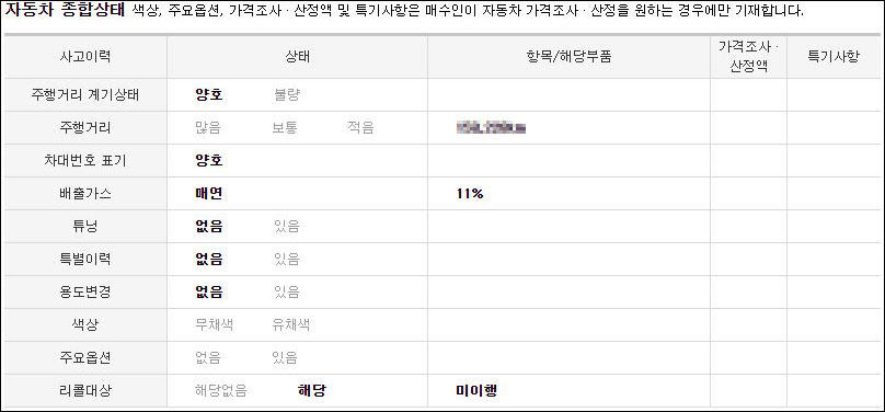 키로수와 사고유무를 살핀 후 가격을 책정해 보면 되겠죠.
