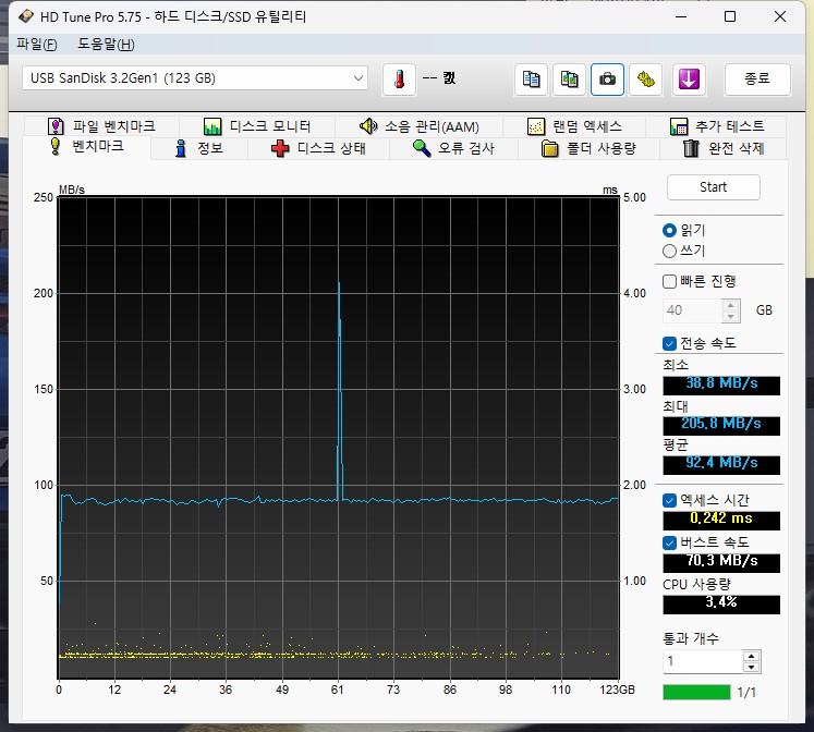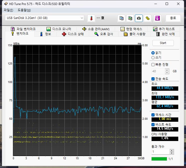 ▲ [2024-12-13] 새로 구입한 SanDisk CZ74 128GB 벤치마크 결과